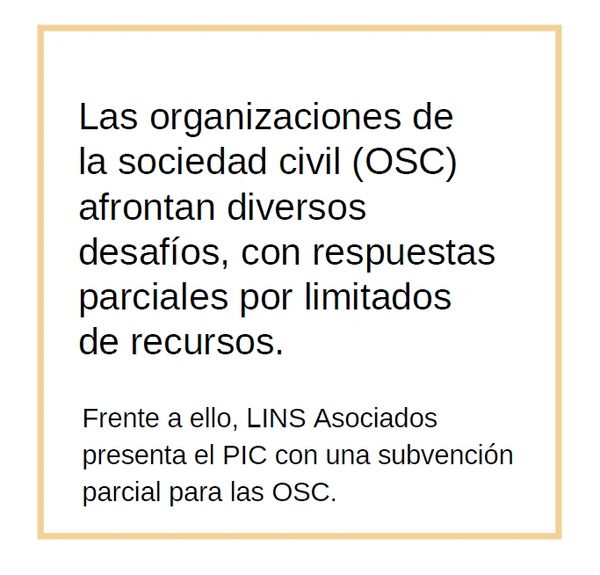 Fortalecer la gestión institucional de las OSC a través de herramientas estratégicas, de aprendizaje y de protección del conocimiento. El PIC propone “soluciones efectivas y ágiles” para mejorar intervenciones y procesos internos.